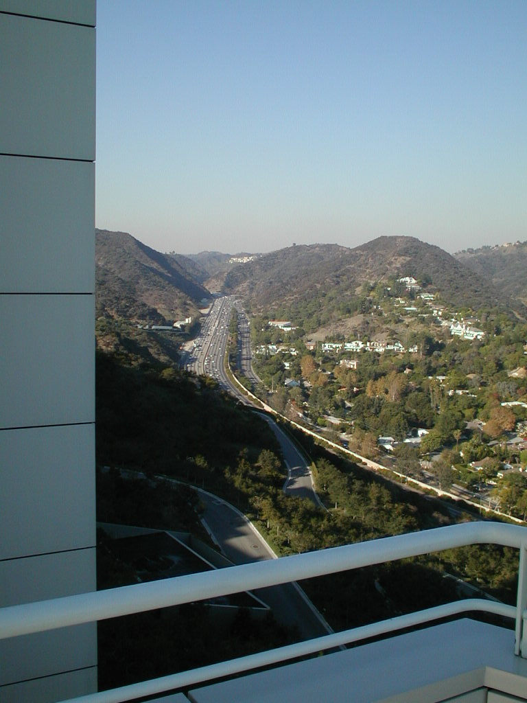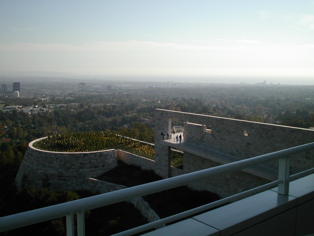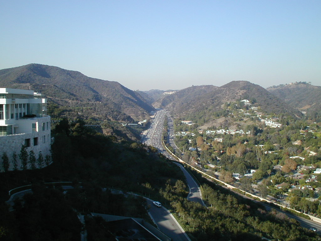 View southwest towards the Pacific Ocean. Venice Beach and Santa Monica down at the coast.