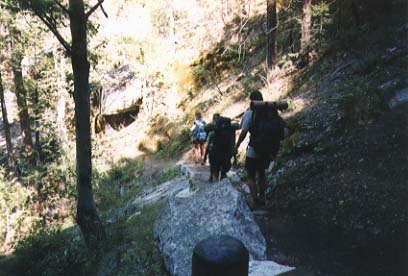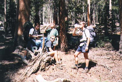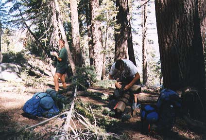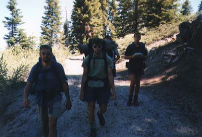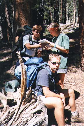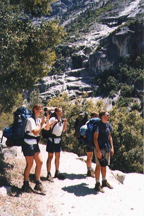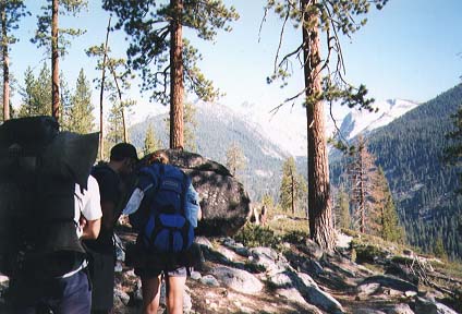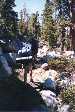 A 4-day hike (appr. 40 miles) in the backcountry of Kings Canyon National Park. For the trip, we started at Road's End in the Cedar Grove area where we parked the cars. We started off to the East, along Bubbs Creek and the turned South, going up to Avalanche Pass at 10,040 feet (3060m). Passing the Roaring River ranger station at 7,400 feet (2256m) we eventually returned to the Cedar Grove area via Lookout Peak (8532ft/2600m) and Don Cecil trail.